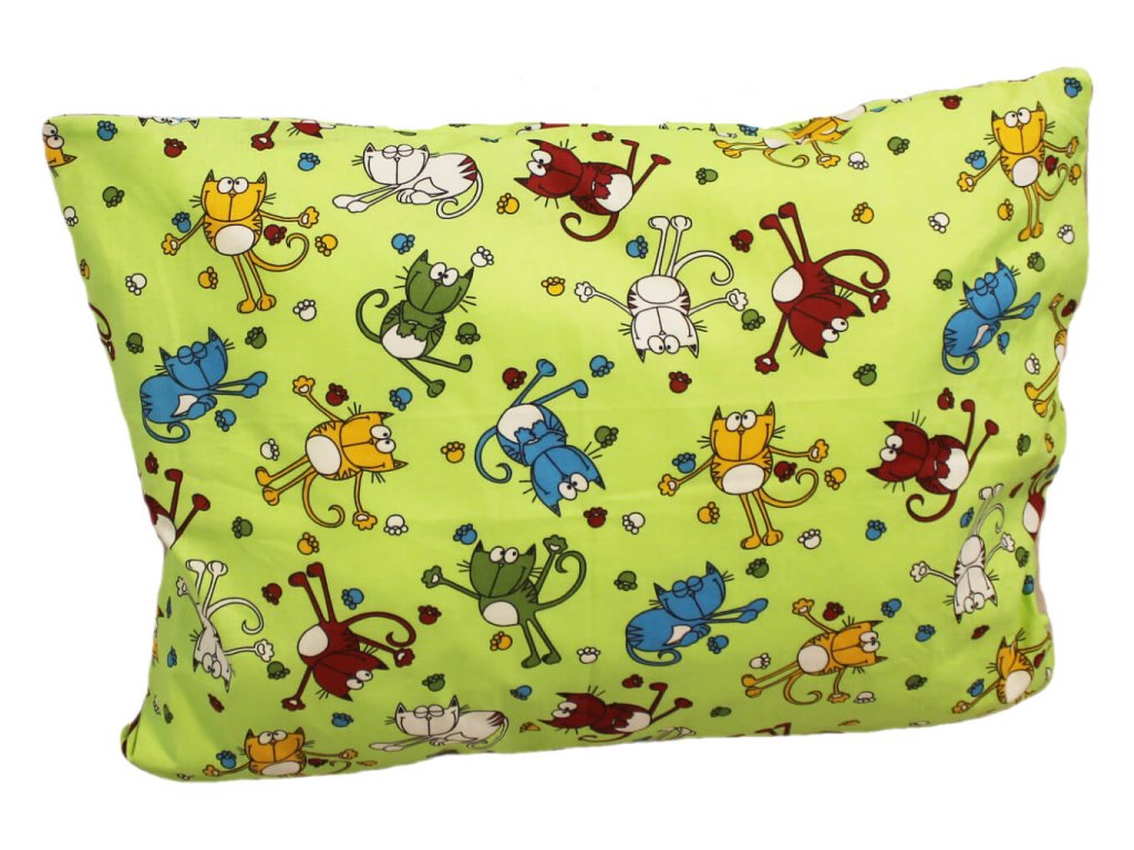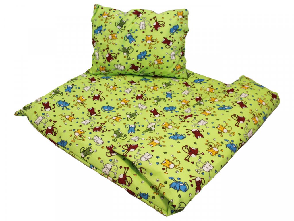 Dětské bavlněné povlečení do školky - Kocourek zelený